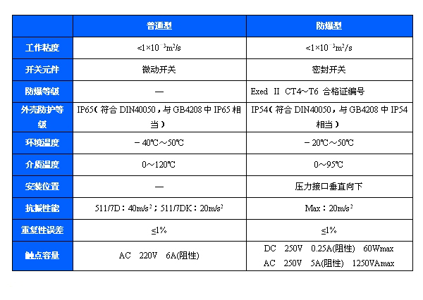 511/7D防爆壓力開關(guān)使用溫度范圍大,可用于腐蝕性介質(zhì)。