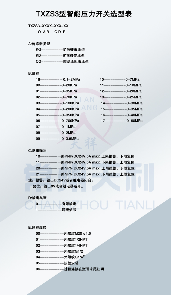 今天繼續(xù)介紹TXZS型智能壓力開關中第三種產品,以及他的概述,參數,選型。