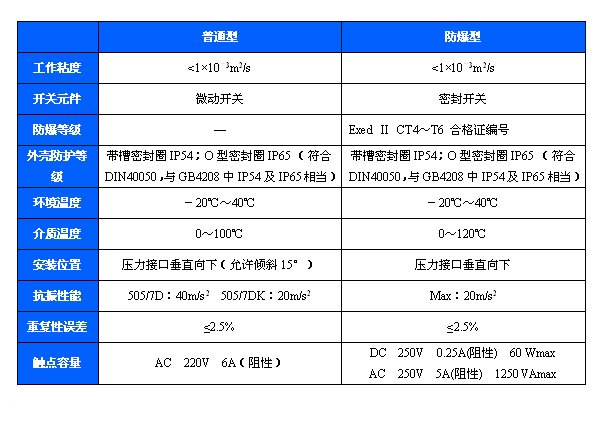 505/7D壓力開關采用無泄漏活塞式的傳感器,可用于含油霧的壓縮空氣及其他對壓力傳感器材料無腐蝕作用的含油霧氣體和液壓油、水油乳濁液及潤滑性能良好的中性液體介質。505/7D壓力開關的設定值可調,其調節(jié)范圍0.3 ~ 40MPa。